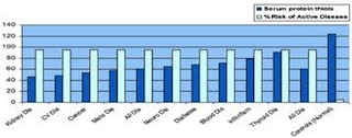 Reduced Level of Serum Thiols in Patients with a Diagnosis of Active Disease. Journal of Anti-Aging Medicine. Vol.6, Number 4, 2003 Pero, R.W., Banne,A.F.